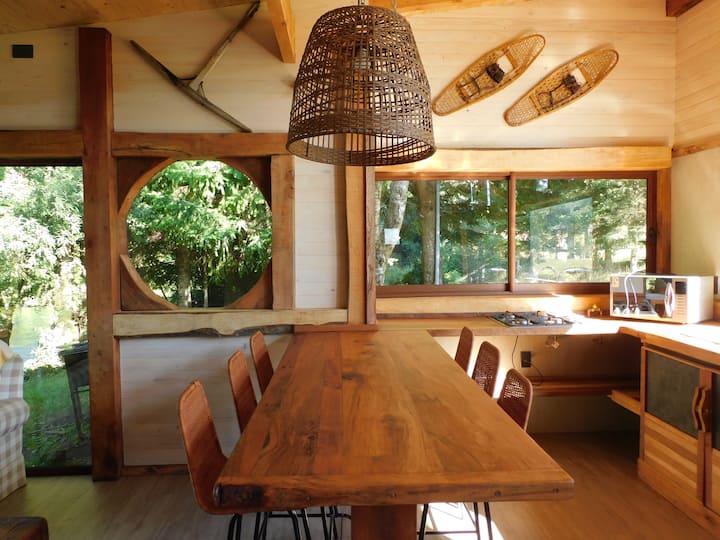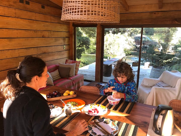 Nous sommes une famille qui aimons la tranquillité et la vie en plein air, les cabanes sont sur les rives de la rivière Liucura, une rivière navigable et elle est parfaite pour partager une activité sportive en famille.