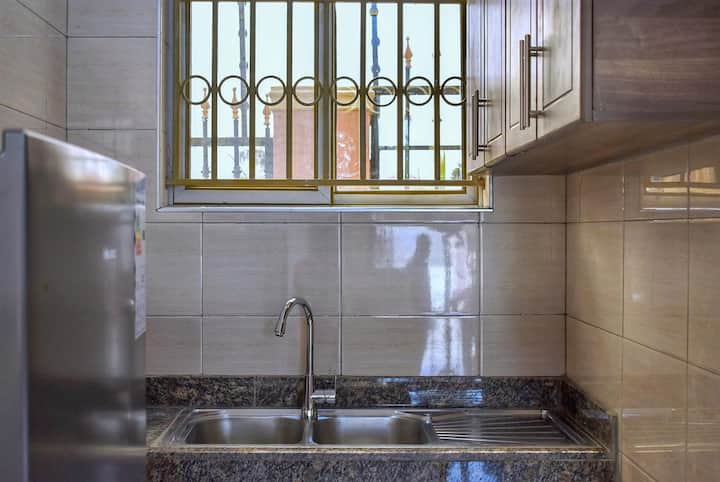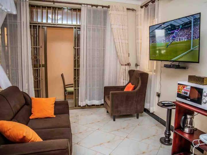 C'est une belle résidence spacieuse ,charmante, meublée de studio et de tourisme au cœur d'Entebbe, juste à côté de via le café des voyageurs.