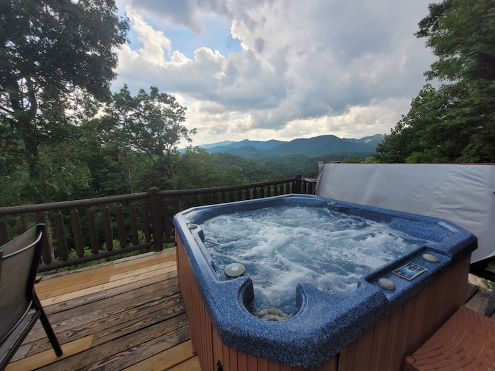 Évadez-vous dans le chalet 8 du complexe hôtelier Watershed à Bryson City, en Caroline du Nord. Ce chalet confortable de 2 chambres/2 salles de bain peut accueillir 4 personnes, avec un jacuzzi, une grande terrasse avec une vue imprenable sur la montagne et un foyer. Jouez au billard, faites un barbecue au gaz, explorez les sentiers de randonnée du complexe ou détendez-vous près de la cascade. Animaux acceptés et parfait pour une escapade relaxante!