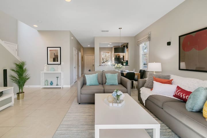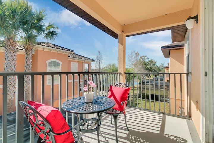 SUPERBE VUE SUR LE LAC ! PARQUET ! 5 téléviseurs ET téléviseurs dans TOUTES LES CHAMBRES ! SPA PRIVÉ! CAFÉ GRATUIT! WIFI GRATUIT! PAS DE FRAIS DE VILLÉGIATURE! À 3 miles de l'entrée de Disney! Marchez jusqu'à la célèbre vieille ville/Fun Spot/Stores, Uber/Lyft/Lynx en bus jusqu'à Disney ; à 15 minutes de SeaWorld, à 20 minutes d'Universal. 4 BD 3.5 BA, 2 BD avec salle de bain attenante BA et 1 au 1er étage ; armoires en bois, comptoir en granit, appareils en acier inoxydable ; Piscine, Glissades d'eau, fitness, tennis, restaurant, bar, mini-magasin et gardien de sécurité 24h/24.