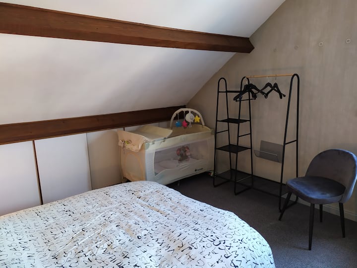 1 lit double, 1 lit pour bébé