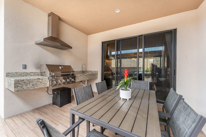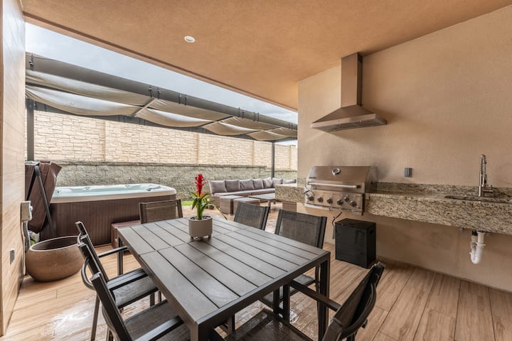 Bienvenue dans une résidence qui présente une décoration contemporaine moderne avec goût, avec de hauts plafonds dans le séjour qui améliorent le bien-être, la clarté et le confort pour nos estimés voyageurs. Situé stratégiquement, ce logement offre à la fois sophistication et commodité, grâce à sa proximité avec des attractions touristiques renommées. S'étendant sur deux étages bien conçus, l'attrait architectural de cette maison assure votre plus grand confort.