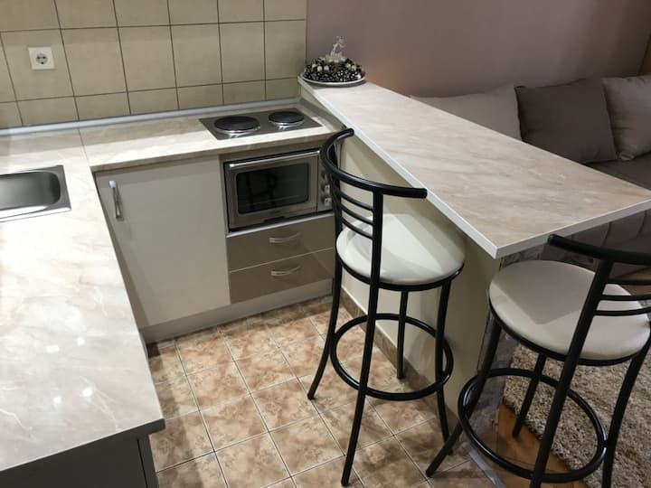 Notre petit studio est équipé de tout le nécessaire attendu d'un voyageur normal, nous l'avons équipé grâce à notre expérience de ce dont nous avons besoin lorsque nous voyageons pour des vacances. On serait content de vous accueillir, d'apprendre à vous connaître,peut-être de partager les commentaires de certains voyages. DOBRO EST ARRIVÉ.