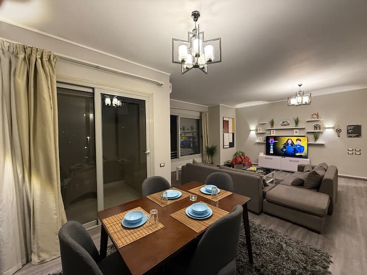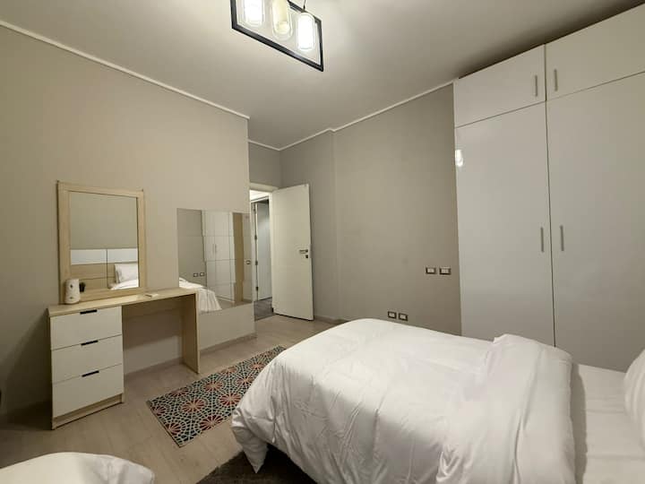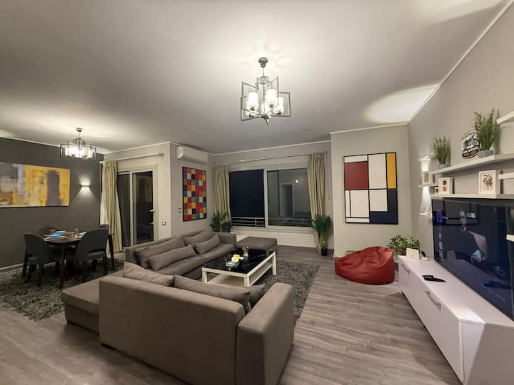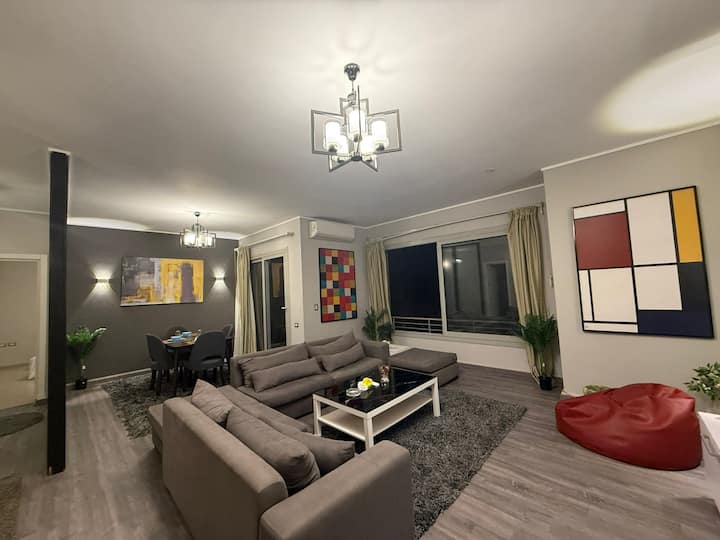 Bienvenue dans votre appartement pas comme les autres à Palm Hills, où les oiseaux chantent, les jardins fleurissent et le stress reste à la porte! Que vous soyez ici pour vous détendre, explorer ou simplement échapper à la vaisselle à la maison, ce logement confortable de 2 chambres est votre endroit idéal.