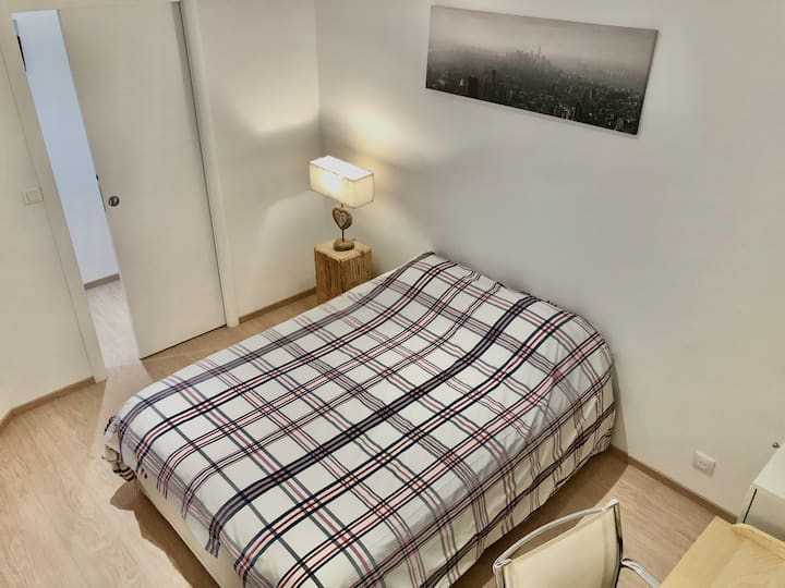Une chambre avec wifi bien aménagée pour travailler.