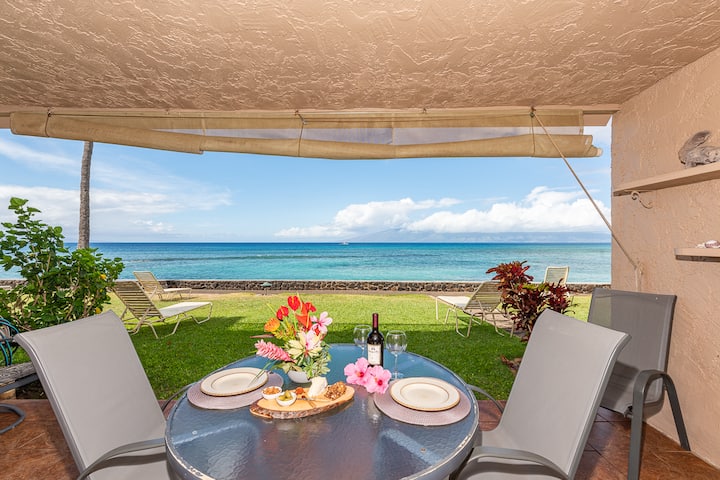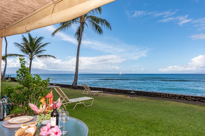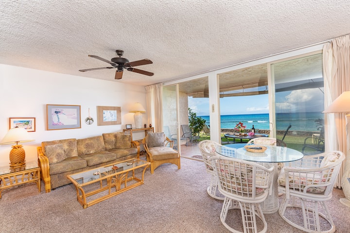 De la cuisine, du salon et du patio, vous aurez une vue imprenable sur l'océan et les îles de Molokai et Lanai. Profitez d'une détente paisible à Lokelani car nous sommes un petit complexe en retrait de la route. Vous serez ravis par les tortues de mer qui viennent tous les matins et au coucher du soleil. Elles se nourrissent souvent très près de la digue. Venez voir à quoi ressemble le paradis dans votre maison loin de chez vous. Climatisation pour la chambre seulement.