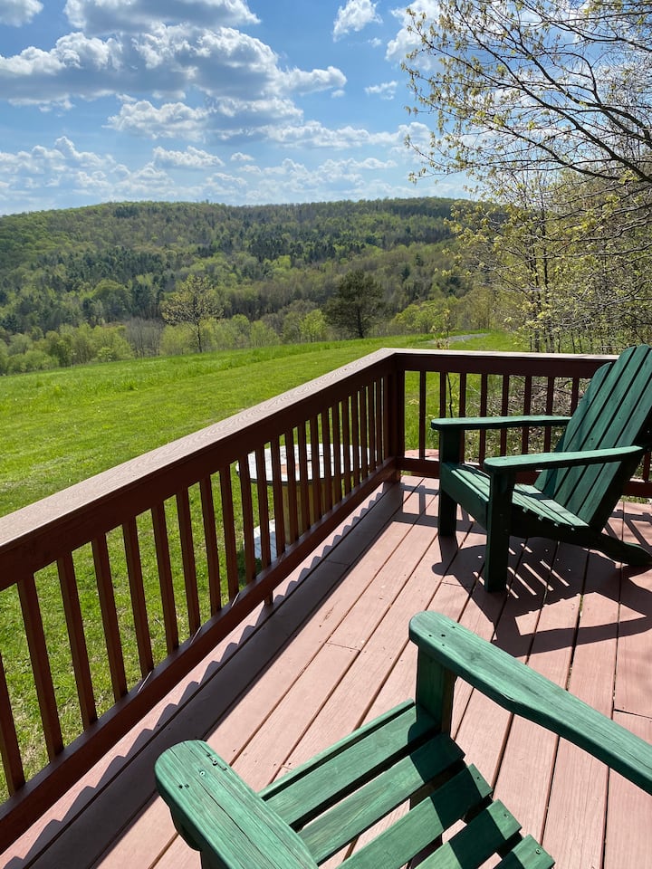 Bonjour! Nous sommes Barbara et Frank et nous vivons dans le nord de l'État de New York, près de Cooperstown, depuis environ 15 ans. Nous aimons tellement la région et nos 253 acres que nous avons construit une cabane sur la propriété à partager avec des gens qui apprécient notre enthousiasme pour la nature et les vues exceptionnelles. Il y a beaucoup à faire dans la région pour tous les goûts et tous les âges !