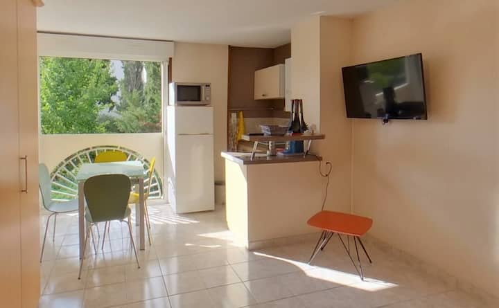 Studio 4p vue parc et parking privé proche plage