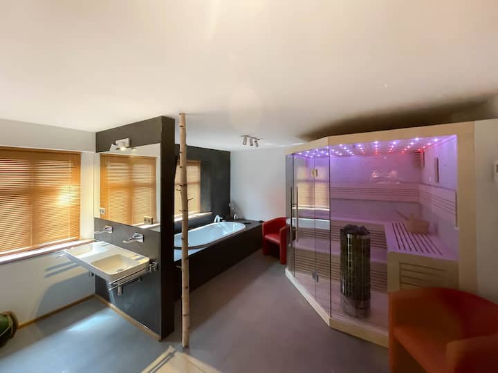 Appartement de vacances dans une maison à colombages avec sauna et piscine