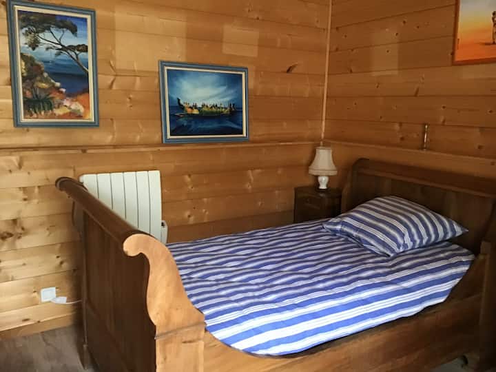 Une chambre avec wifi bien aménagée pour travailler.