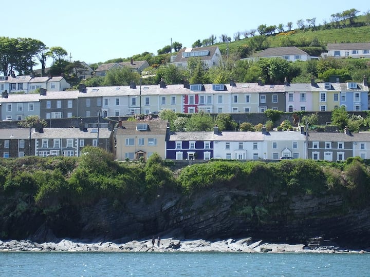 Bay View est dans une position de première ligne avec vue directe sur la mer et un parking privé. Il est à seulement 2 minutes à pied des belles plages de sable de New Quay. Il offre une vue imprenable sur la mer et la baie depuis toutes les chambres et le jardin, ce qui en fait un endroit merveilleux pour des vacances. New Quay a de merveilleuses plages de sable fin. Des dauphins et des phoques au nez de bouteilles peuvent être vus dans la baie depuis la maison. Écoutez la mer et réveillez-vous à la vue des dauphins dans votre lit!