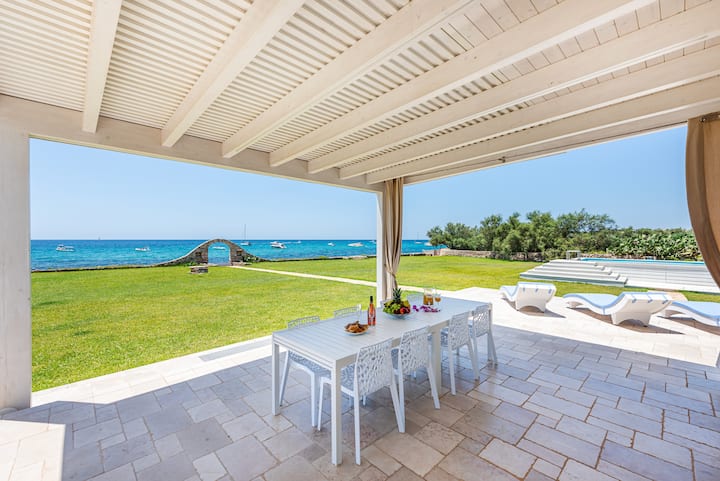 Bienvenue dans l'une des villas les plus extraordinaires de toute la région du Cap de Leuca, un vrai petit bijou situé dans un endroit en bord de mer ,absolument unique. Dès votre arrivée, vous serez submergé par la vue imprenable sur la mer et l'emplacement magnifique, la villa est située sur une sorte de promontoire, située entre la petite baie de Ciardo et celle de Felloniche : cette villa est vraiment une opportunité unique !