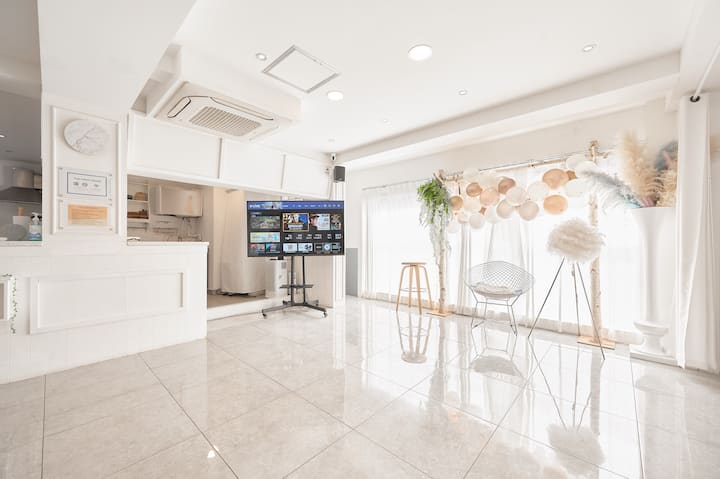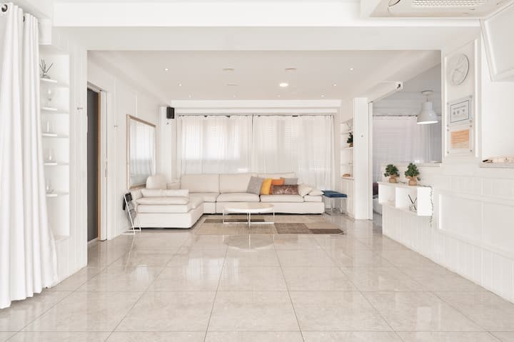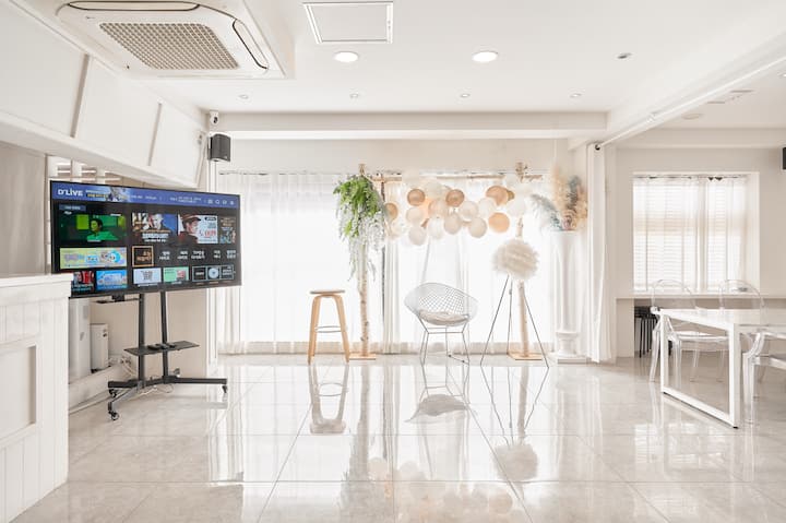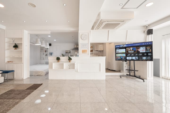 White Hongdae Station à 5 minutes à pied du centre-ville Location de chambre Studio blanc de 30 pyeong pour groupe ! Grande télévision Netflix, Youtube