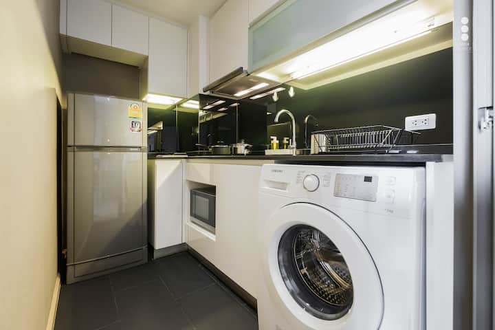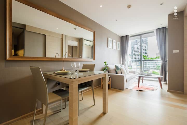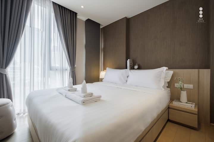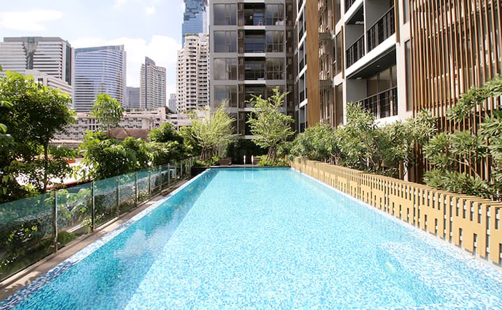 Lumineux et grand 1BR/Piscine extérieure + bain de soleil/3m-BTS Silom