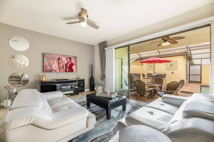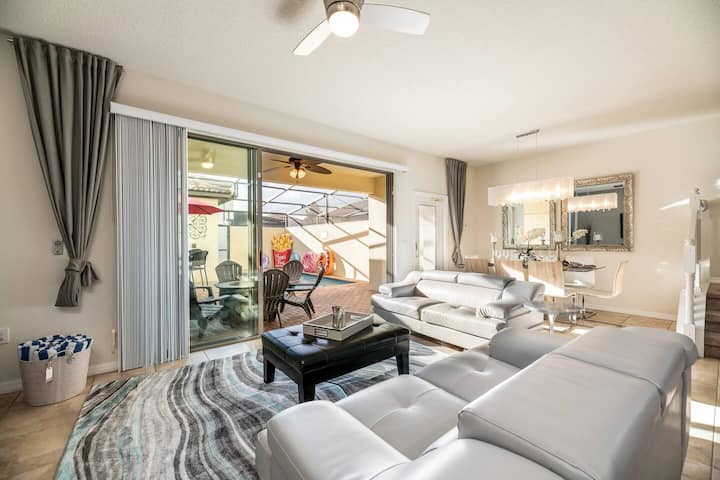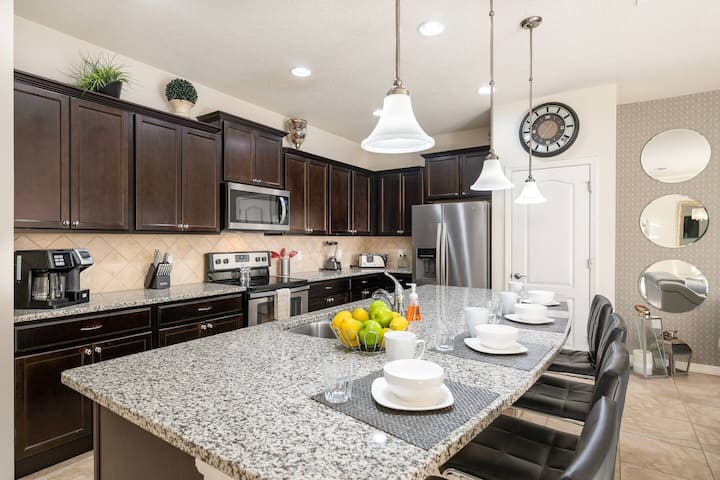 Adventure vous attend dans la «Sweet Retreat», une fabuleuse maison de ville de 5 chambres dans la station balnéaire de classe mondiale de Windsor à Westside. Cette maison récemment rénovée se trouve juste à côté du club-house du complexe et dispose d'un loft Pirates des Caraïbes avec une passionnante chasse au trésor pour les enfants de tous âges. Les enfants adoreront le loft Pirate, la chambre Mickey et la chambre à thème Moana. Parking à l'avant et à l'arrière, WI-FI GRATUIT, chauffage gratuit de la piscine et barbecue GRATUIT font de cette maison votre escapade Disney parfaite.
