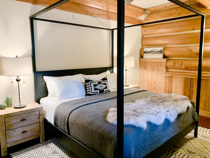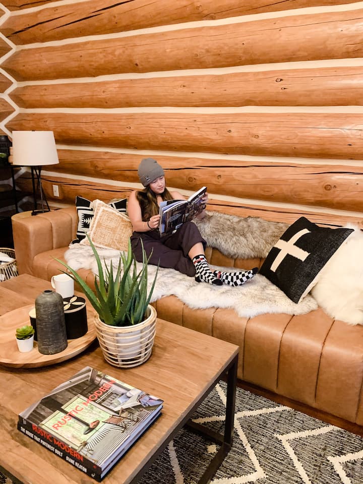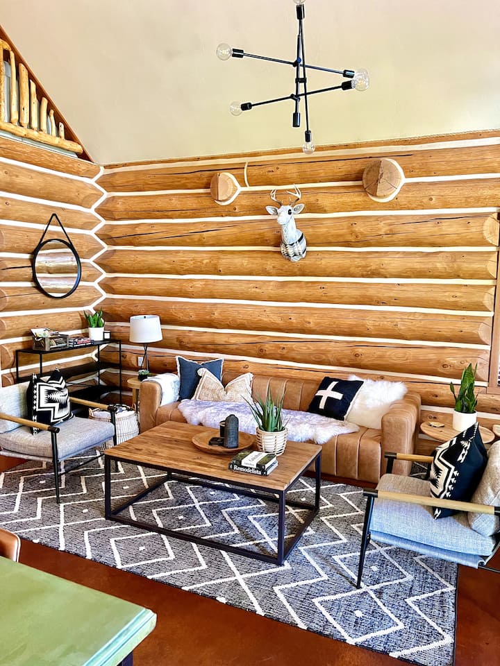 La magnifique propriété de 3 acres offre quelque chose pour tout le monde : la moitié du terrain est notre maison en rondins de montagne moderne magnifiquement conçue et des zones aménagées de niveau, y compris un jeu de palets, et l'autre moitié de la propriété est constituée de bois boisés avec un ruisseau saisonnier.