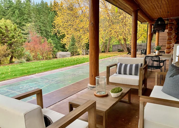 À seulement une heure de Portland et à quelques minutes en voiture du pont de Hood River, notre emplacement dans les gorges du fleuve Columbia est spectaculaire en toutes saisons avec de belles plantes et fleurs au printemps, un vaste choix d'aventures en plein air dans les gorges (et cueillette de baies et de cerises) en été, un magnifique feuillage d'automne, du rafting en eaux vives, et des visites de la « Fruit Loop » pendant la saison des récoltes en automne, et des sports de neige au mont Hood à proximité en hiver. Les loisirs toute l'année (grands sports nautiques, VTT, pêche, rafting en eaux vives) et certaines des meilleures randonnées du nord-ouest du Pacifique à proximité en font la retraite idéale pour ceux qui aiment les activités de plein air toute l'année.