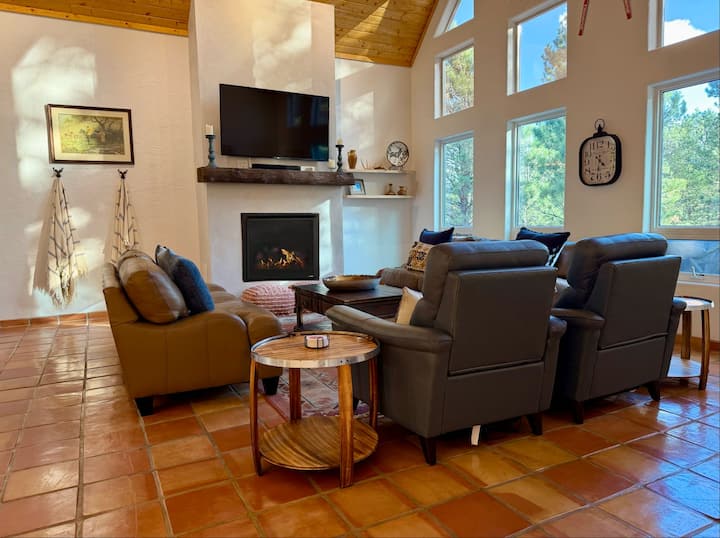 Emplacement : nichée juste à l'extérieur d'Angel Fire, cette propriété offre une escapade sereine et isolée tout en restant à une courte distance en voiture de tous vos besoins essentiels. Pour les visites hivernales, un véhicule à quatre roues motrices est fortement recommandé et, dans certains cas, nécessaire pour naviguer facilement sur le terrain enneigé.
