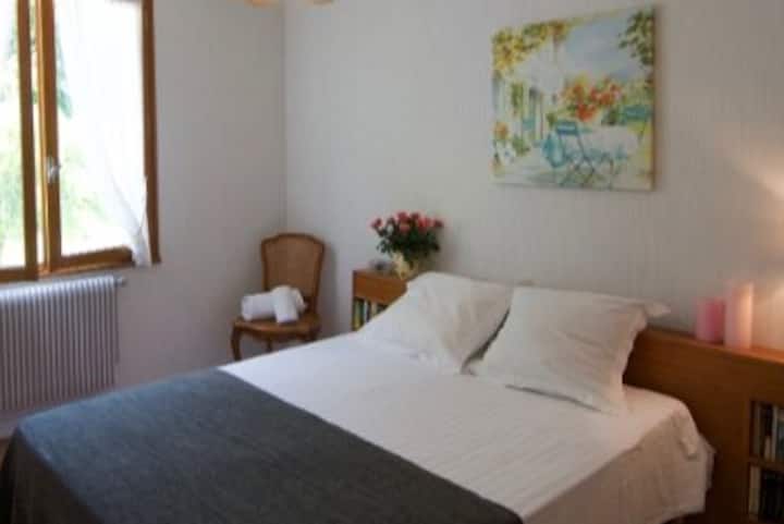 Une chambre avec wifi bien aménagée pour travailler.