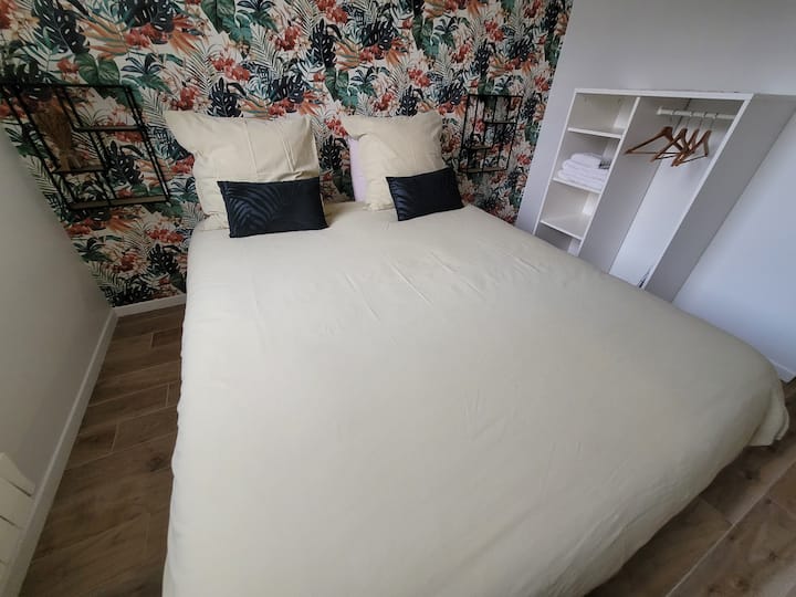 Une chambre avec wifi bien aménagée pour travailler.
