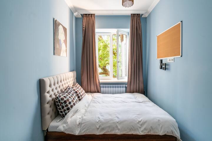 Une chambre avec wifi bien aménagée pour travailler.