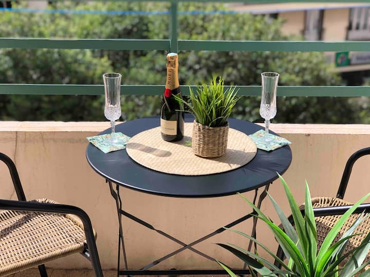 Ensoleillé avec stationnement•Balcon•Climatisation•Marchez jusqu'à la plage et la ville