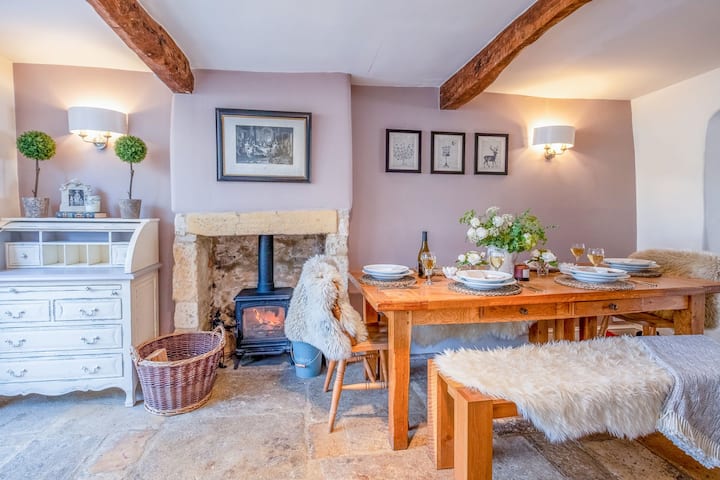 Bag End et Peppercorn Cottage sont deux chalets de vacances des Cotswolds magnifiquement rénovés situés dans un seul logement. Combiné les propriétés peuvent accueillir 6+2 personnes, dans trois chambres bien aménagées, avec l'option +2 étant un petit canapé convertible double dans le salon de Peppercorn Cottage, avec trois salles de bains spacieuses. Cette superbe retraite offre un hébergement spacieux et flexible, parfait pour les groupes d'amis ou les familles nombreuses pour se détendre et profiter d'une belle pause au cœur des Cotswolds. Construites à l'origine en pierre des Cotswolds, les propriétés présentent une multitude de caractéristiques de caractère, notamment des murs en pierre apparente, des poutres en chêne, des sols en dalles et des poêles à bois dans la maison et le chalet. Niché entre les propriétés est beau jardin clos, avec beaucoup de sièges en plein air et un barbecue au charbon de bois, offrant une oasis de paix et de tranquillité pour profiter toute l'année. Bag End et Peppercorn Cottage est une maison de vacances adaptée aux chiens, adaptée à un chien de petite taille !