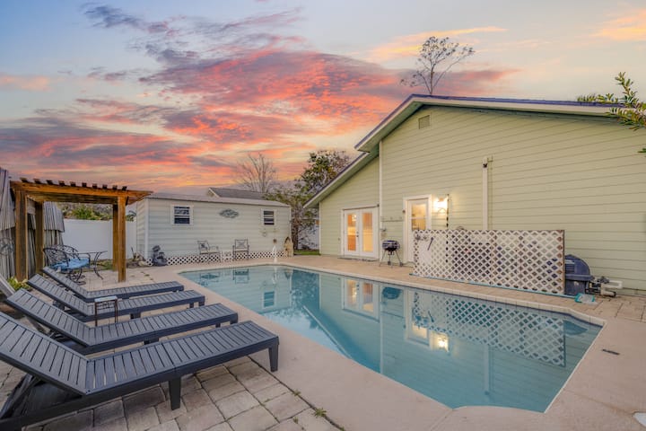 L'ensemble du groupe bénéficiera d'un accès facile à tous les sites et commodités depuis ce logement central. Sirotez votre café du matin ou vos cocktails du soir tout en vous relaxant au bord de la piscine et en profitant de tout ce que Jax Beach a à offrir. Parfait pour les familles, avec un espace extérieur clôturé, une piscine, une cuisine approvisionnée, une connexion Wi-Fi, des lits confortables, un lave-linge/sèche-linge. À vélo ou à quelques minutes en voiture de tout ce dont vous avez besoin ! Mayo Clinic, Ponte Vedra, TPC Sawgrass et les plages de l'Atlantique à quelques minutes !