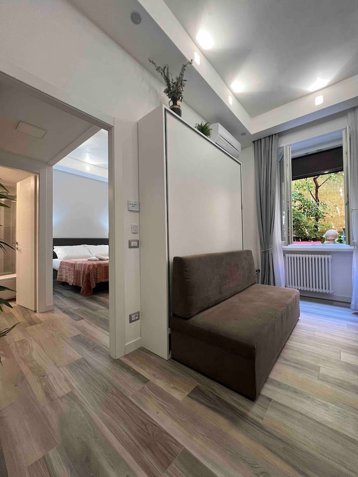 Appartement NEUF, entier à Saint-Pierre : Vatican : central, via Dei Cavalleggeri, salon avec coin cuisine et salle de bains + chambre et salle de bains. Rénové en janvier 2022. Piazza Navona, Panthéon et Campo dei Fiori sont accessibles à pied en 15 minutes. 100 mètres de la Piazza San Pietro. Parfait pour 4 personnes.