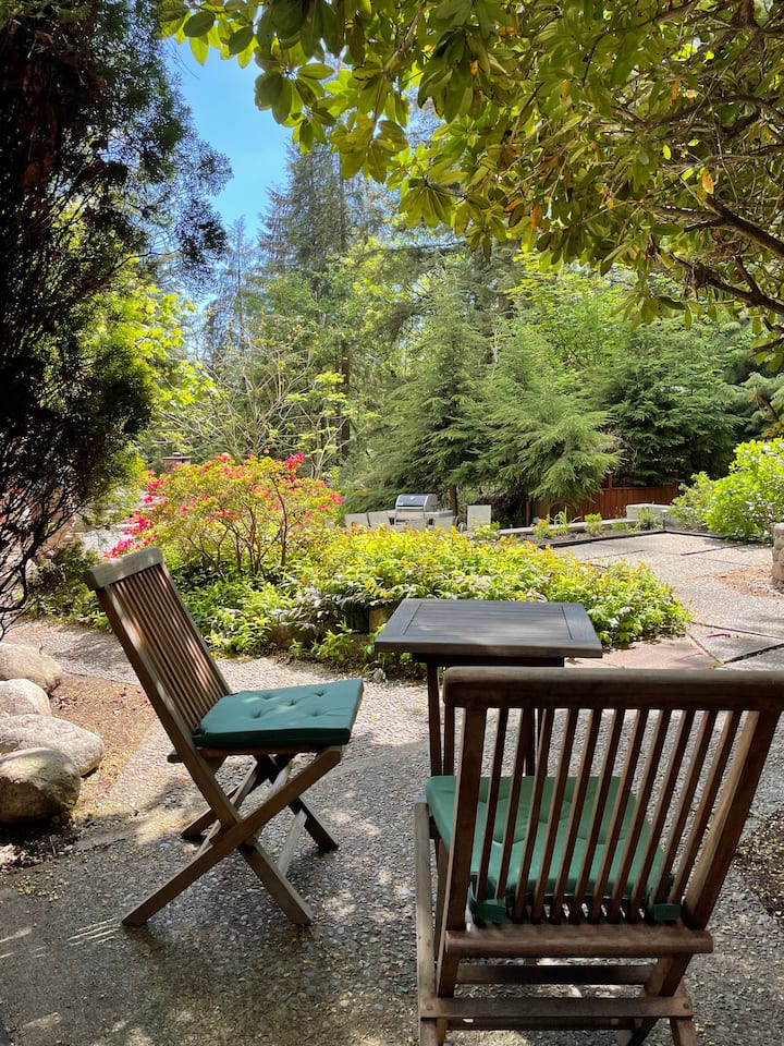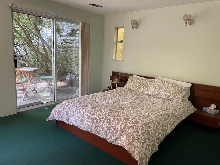 Suite avec jardin et beau patio dans l'arrière-cour.
