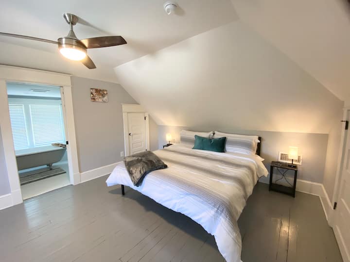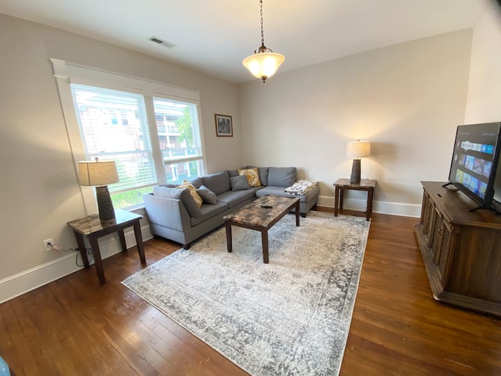 Loft de 2 chambres au centre-ville avec patio, adapté aux animaux de compagnie et aux enfants