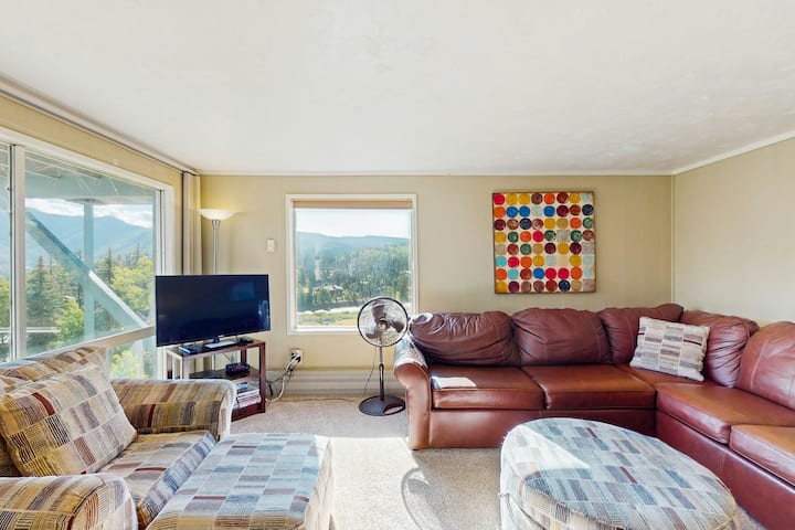 2 chambres au pied des pistes avec piscine, vue sur le lac et la montagne