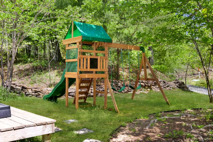 Jacuzzi, foyer, barbecue, terrasse, aire de jeux et WiFi