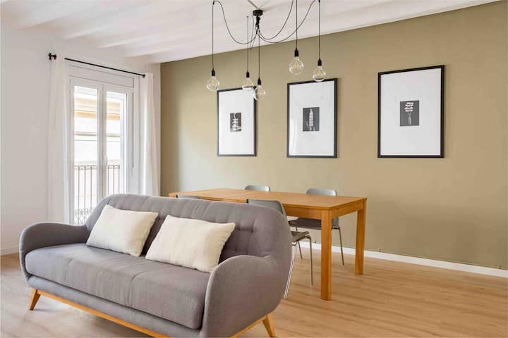Bienvenue dans notre appartement 1BR confortable et entièrement équipé (55 m2) dans le quartier animé du Raval ! Situé au milieu d'un quartier animé avec de nombreux bars et restaurants, notre appartement offre le mélange parfait de confort et de commodité.