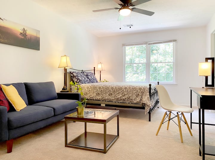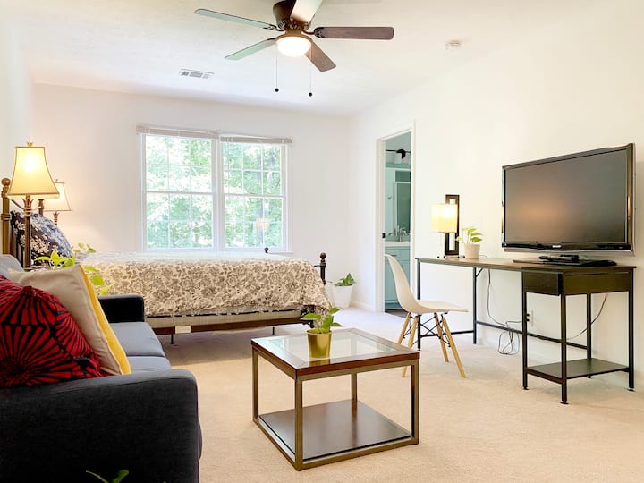 Retirez-vous dans votre oasis urbaine dans cette suite spacieuse avec salle de bain privée. Profitez de votre espace de vie et de travail exclusif avec une grande télévision, un canapé confortable et une connexion Internet haut débit. Faites-vous des amis avec d'autres voyageurs du monde entier ; cuisinez, mangez et explorez cette ville fantastique ensemble. Le tout dans cet appartement élégant et moderne récemment rénové, situé dans un quartier paisible et sûr. L'endroit est parfait pour quelques mois ou quelques nuits avec un emplacement idéal à proximité des restaurants, des épiceries et des divertissements.