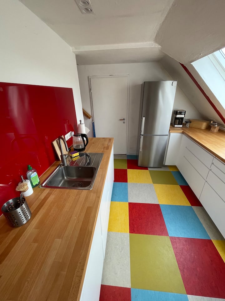 Un espace commun avec wifi, bien aménagé pour travailler.