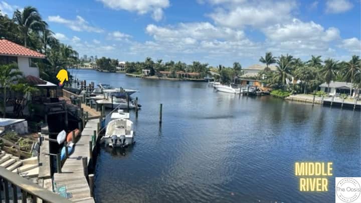 Si vous êtes un passionné de plein air, vous aimerez l'emplacement de notre appartement. Le Middle River est un endroit agréable où aller pêcher, faire du kayak, du paddleboard ou même apporter votre propre bateau. Notre quai privé offre un accès facile à l'eau, vous pourrez donc explorer les belles voies navigables de Fort Lauderdale.