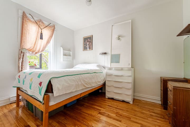 Grande chambre avec vue sur le parc, dans le quartier branché de Mile End