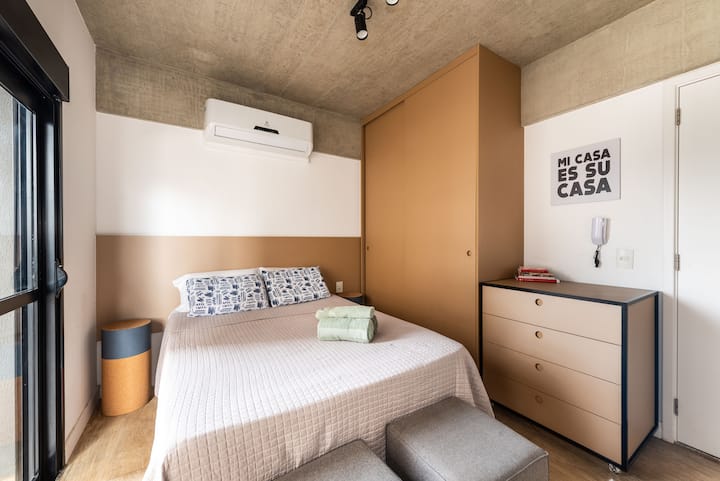 Nouveau studio avec balcon, proche de l'av. Paulista, wifi rapide