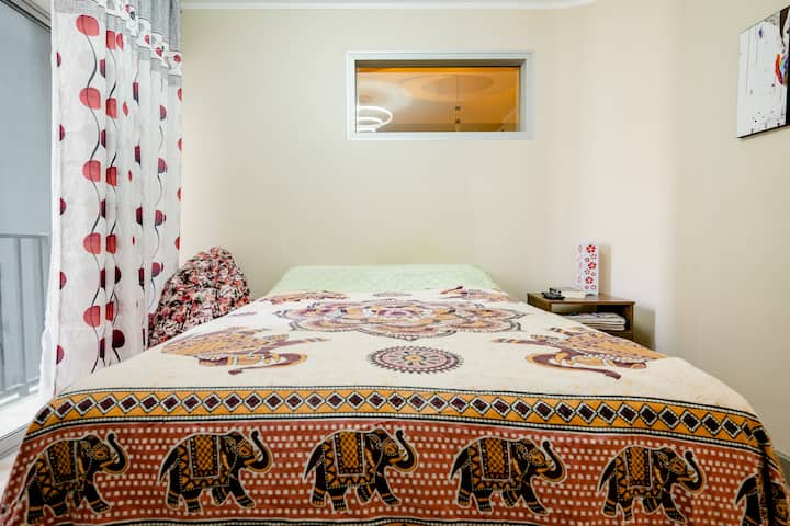 Une chambre privée dans un logement, incluant l'accès aux espaces partagés.