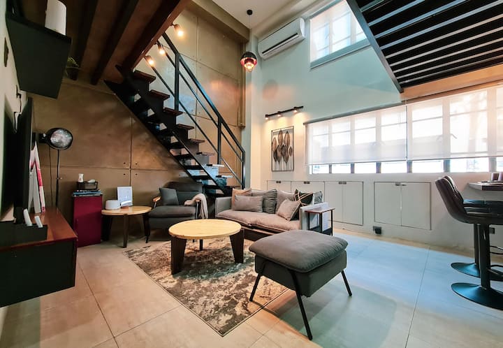Nous invitons nos voyageurs dans ce loft industriel moderne de 20 ans dans le quartier de Cubao, QC. La disposition ouverte maximise la surface totale de 50 m². Notre lit queen en mousse à mémoire de forme de 10 pouces peut accueillir confortablement 2 adultes. Le stationnement est réservé et gratuit. Notre logement convient à ceux qui recherchent une expérience de travail à domicile alternative dans la ville.
