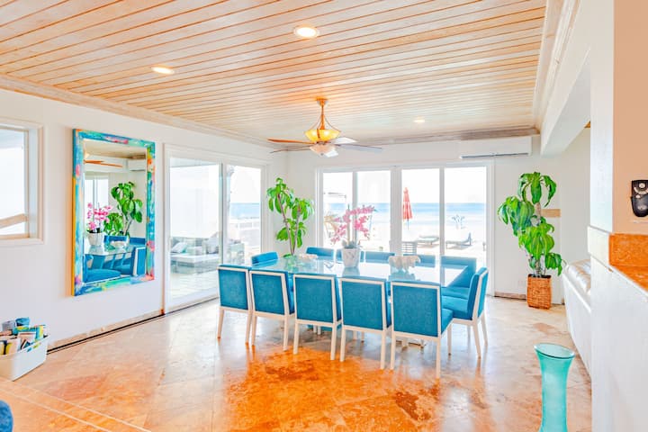 Laissez-vous tenter par le confort et la tranquillité de cette maison chic en bord de mer. L'espace dispose d'un aménagement ouvert, de couleurs vives et d'un mobilier de bon goût qui capturent la nature perpétuelle des îles.