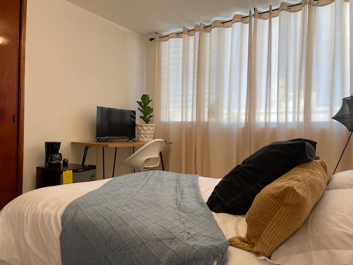 Une chambre privée dans un logement, incluant l'accès aux espaces partagés.