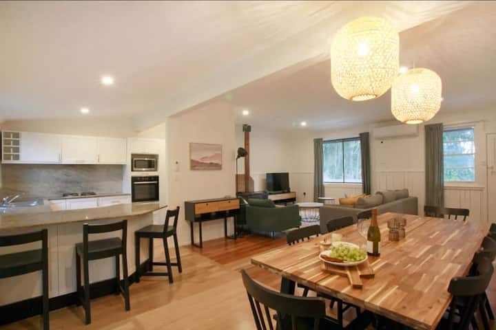 Asseyez-vous sur la terrasse et profitez de la tranquillité du style de vie côtier et rural. Cuisinez un festin sur votre barbecue à gaz privé et profitez de l'expérience culinaire en plein air que cela offre. La maison dispose également d'une cour privée, fermée et séparée des cabanes et dispose d'une balançoire et d'une cabane.