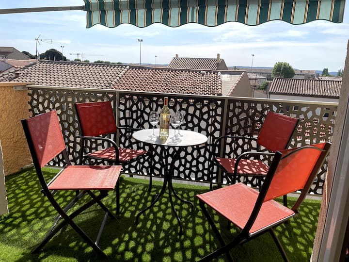 Vous serez à 700m (5-6min) des célèbres « Halles de Narbonne » élues plus beau marché de France en 2022, ainsi que des nombreux restaurants avec terrasses et autres commerces.