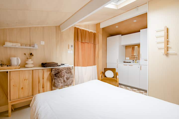 Une chambre privée dans un logement, incluant l'accès aux espaces partagés.