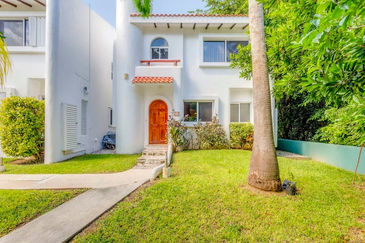 Cette maison de ville de deux étages dans la phase 2 de Playacar avec portail de sécurité offre à votre groupe de 8 personnes maximum de l'espace pour respirer. Le quartier est assez sûr pour des promenades nocturnes à travers les sentiers de la jungle, mais vous êtes à seulement 10 minutes à pied de l'énergie des restaurants, des bars et de l'accès à la plage de la 5e avenue.