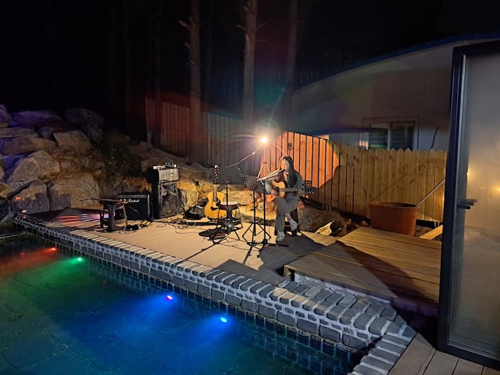 Piscine, salle de barbecue intérieure privée, foyer extérieur, cascade artificielle, karaoké, jardin avec pelouse, pension Ari Hill