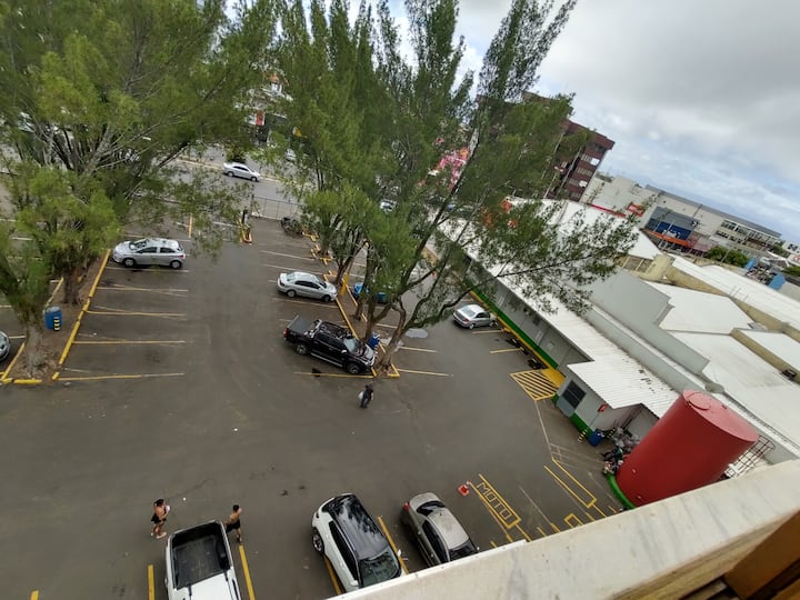 Il y a également un balcon avant ou un balcon avec une corde à linge, un canapé individuel avec protection de type housse/serviette, une table centrale pour les tasses ou les jeux, deux supports pour le filet, un rideau avec occultation, 4 fenêtres coulissantes, avec du verre et une attache à fermer. Une large vue sur la cour, en face et à droite de la ville, sur les montagnes de la mer, l'avenueЗaçu et d'autres rues, les commerces, les commerces et le supermarché national qui y est visible et à 30 mètres.