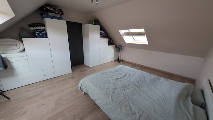 Une chambre privée dans un logement, incluant l'accès aux espaces partagés.